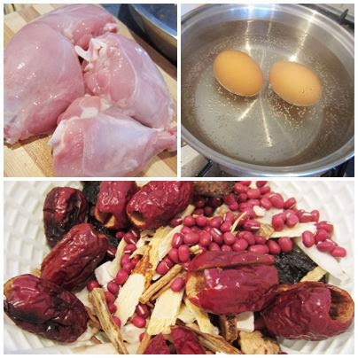 Step 3: Add herbs, chicken drumsticks, eggs, red dates and red beans into the pot (basically throw everything into the pot. Cannot get any easier than this! Haha). Turn to low heat and let simmer for at least 3 hours. (Make sure to always keep an eye on it, stir it occasionally and add water if needed).